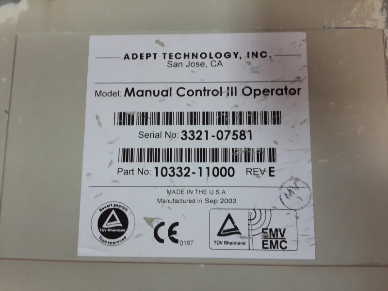 ADEPT TECHNOLDGY MANUAL CONTROL III OPERATOR