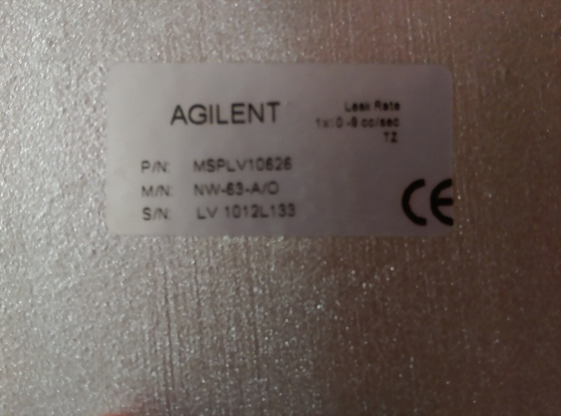 AGILENT NW-63:A/O LV 1012L133 VACUUM VALVE BLOCK