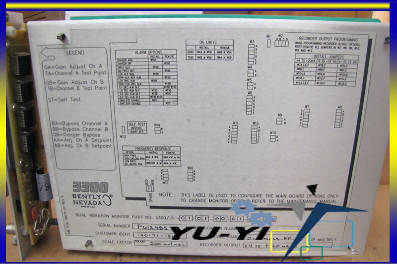 BENTLY NEVADA 3300 DUAL VIRBATION MONITOR 3300 15-01-01-00-01-01-00 4 20MA