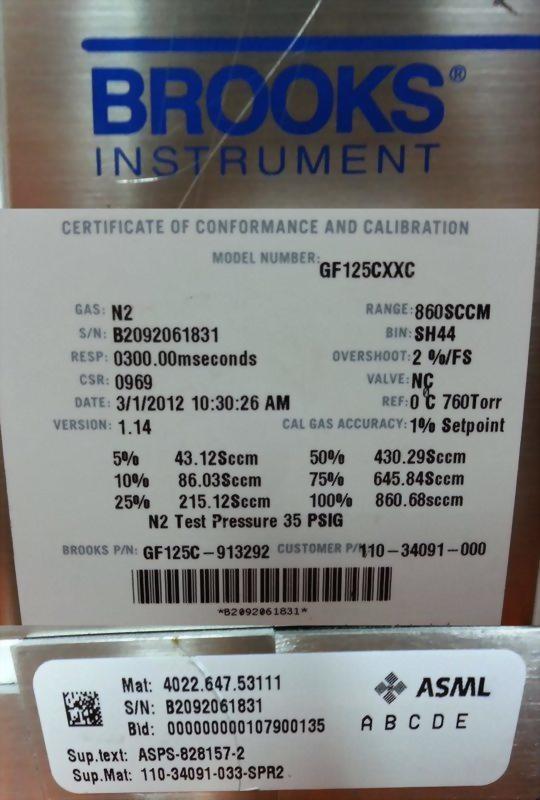 BROOKS GF125CXXC MASS FLOW CONTROLLER GF125C-913292