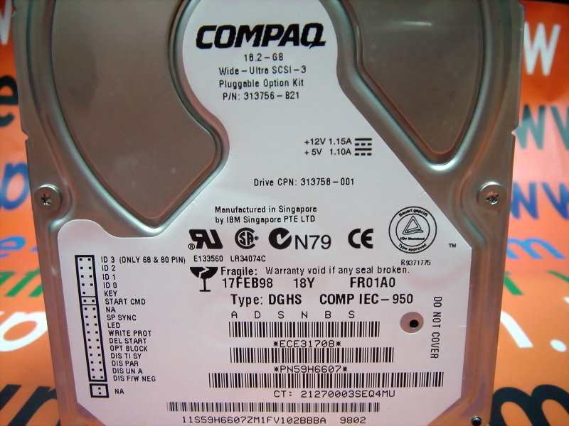 COMPAQ HARD DISK DGHS COMP IEC-950 / 59H6607 18GB / 80PIN