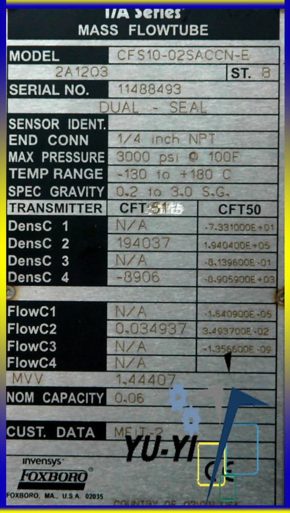 FOXBORO CFS10 CFS10-02SACCN-E IA SERIES MASS FLOWTUBE