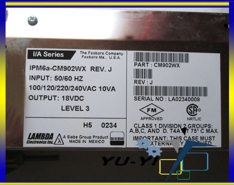 FOXBORO IA SERIES IPM6A-CM902WX REV J CM902WX POWER