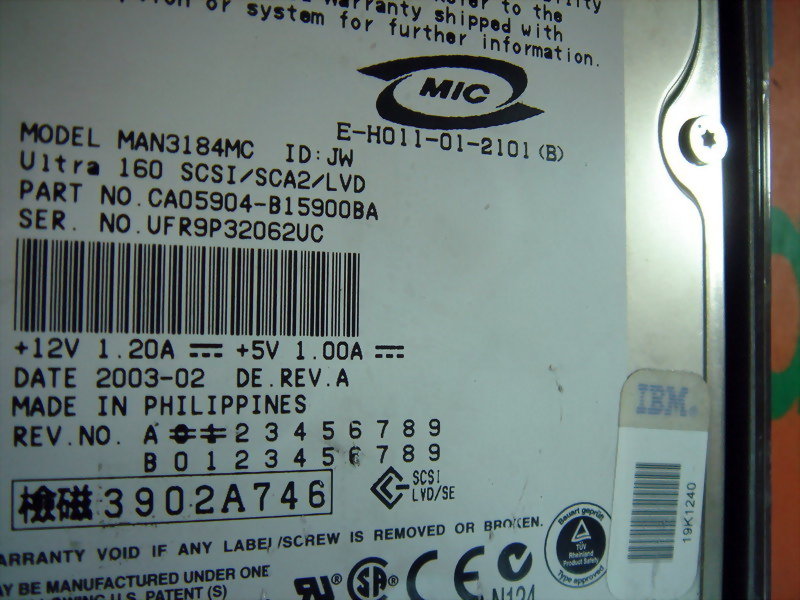 型号 : FUJITSU MAN3184MC
