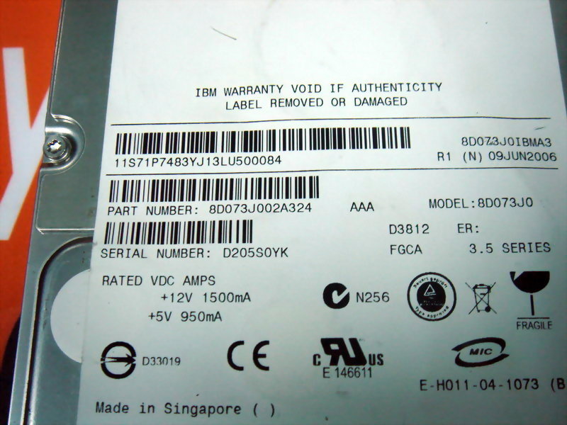 HARD DRIVE IBM 8D073J002A324 / 8D073J0 73.4GB