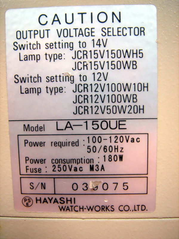 HAYASHI LUMINAR ACE OUTPUT VOLTAGE SELECTOR LA-150UE TKG-345-3100