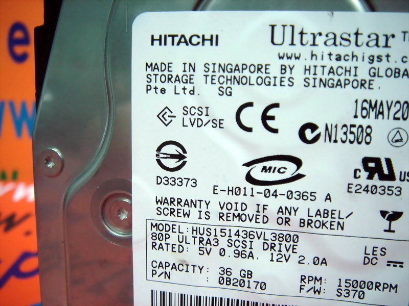 HITACHI HARD DRIVE HUS151436VL3800 / IBM 0B20170 36GB SCS