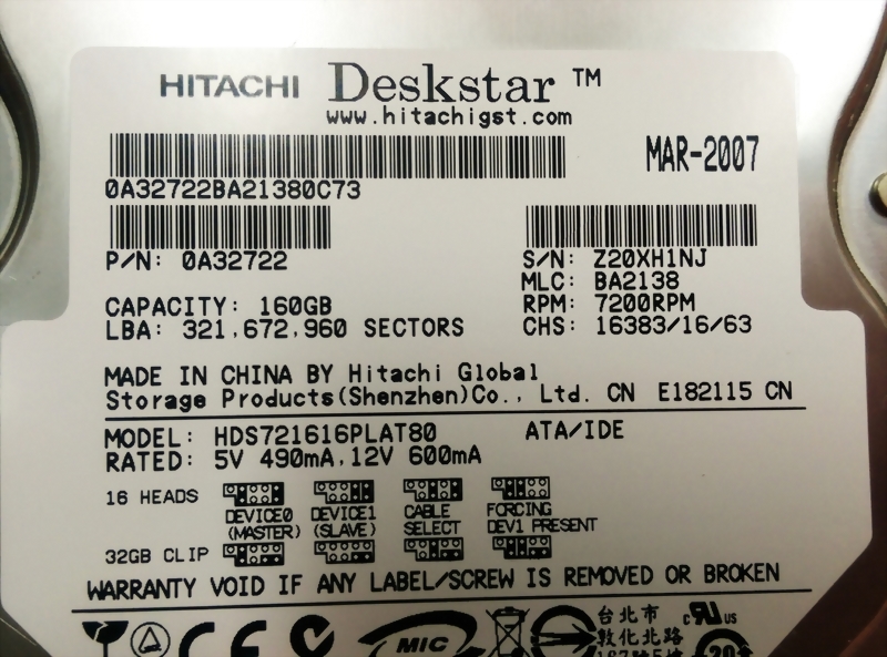 HITACHI HDS721616PLAT80 160GB PC HARD DRIVEHITACHI HDS721616PLAT80 160GB PC HARD DRIVE