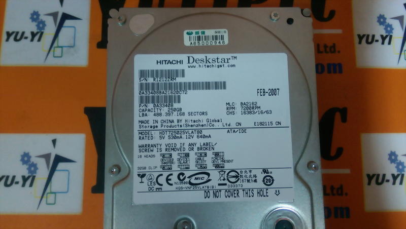 HITACHI HDT725025VLAT80 250GB HARD DRIVE