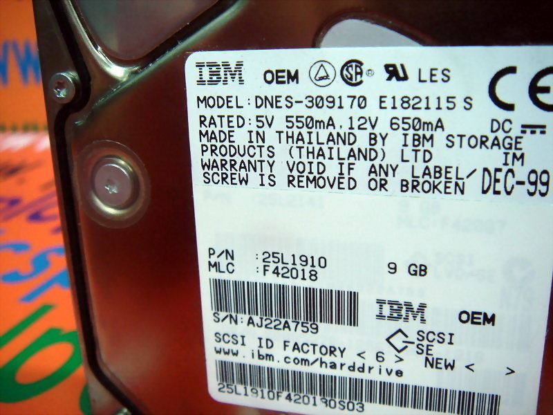 IBM HARD DRIVE DNES-309170 / 25L1910 9GB / 68PIN