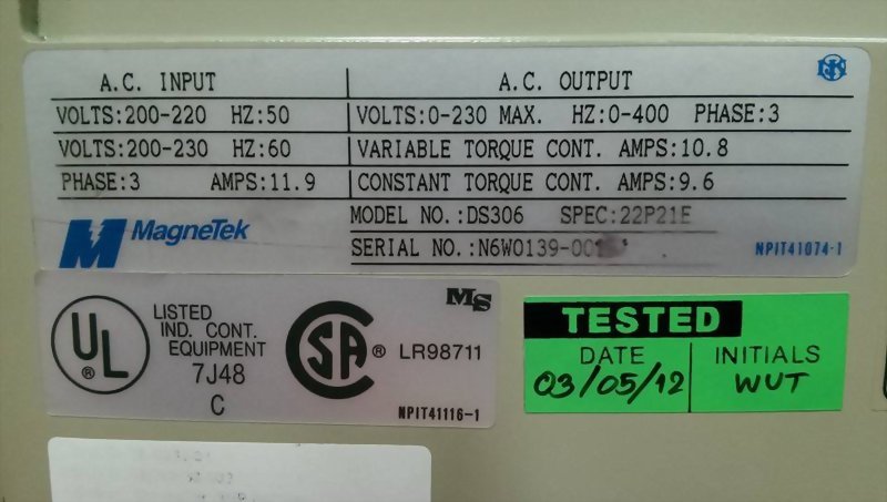 MAGNETEK ADJUSTABLE AC DRIVE DS-306 GPD503