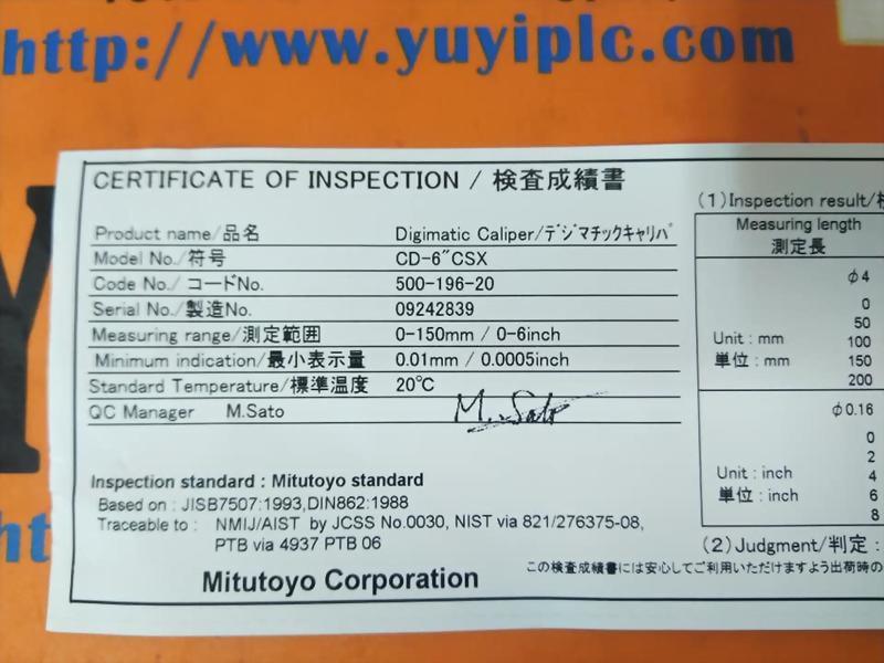 型号 : MITUTOYO CD-6"CSX 500-196-20 ABSOLUTE DIGIMATIC CALIPER