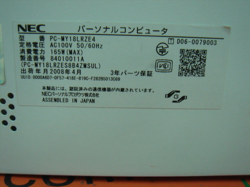 型号 : NEC PC-MY18LRZE4