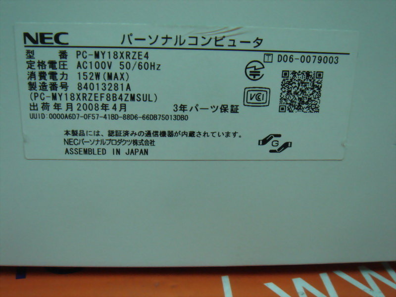 型号 : NEC PC-MY18XRZE4