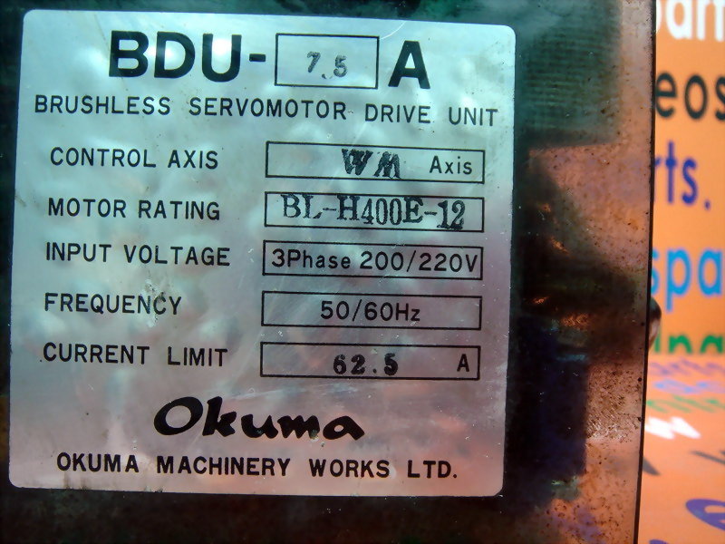 型号 : OKUMA BRSUHLESS SERVOMOTOR DRIVE UNIT BDU-7.5A AXIS:WM BL-H400E-12