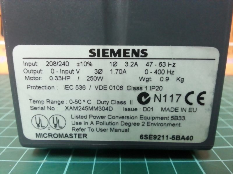 SIEMENS MICROMASTER 6SE9211-5BA40 INVERTER