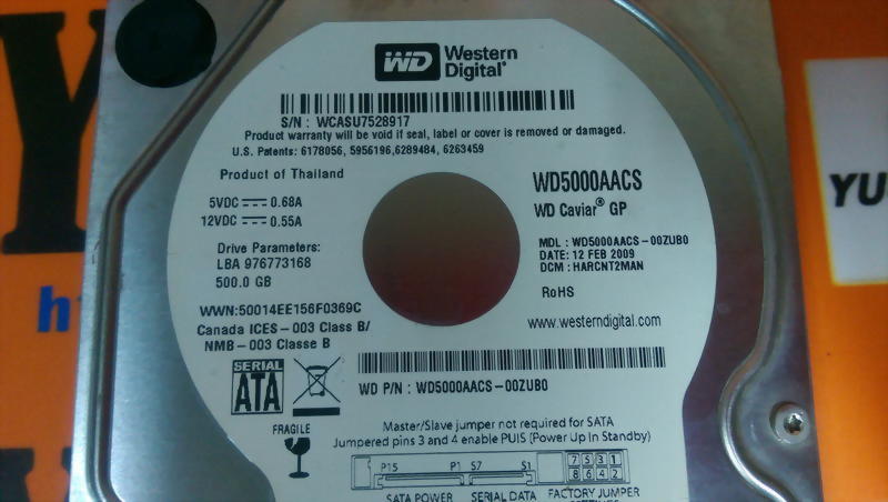 WESTERN DIGITAL WD500AAXS-00ZUB0 HARD DRIVE