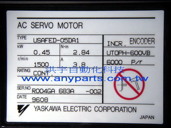 型号 : YASKAWA AC SERVO MOTOR USAFED-05DA1 0.45kW 3.8A / ENCODER UTOPH-600VB