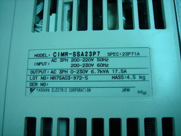 型号 : YASKAWA CIMR-G5A43P7 INPUT: AC 3PHASE 380-460V 50Hz