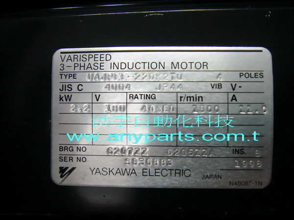 型号 : YASKAWA VARISPEED 3-PHASE INDUCTION MOTOR UAJPEE-22DK2TU 2.2kW 180V 11A / UAJPEE-15DK2TU