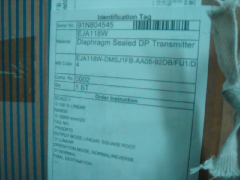 YOKOGAWA DIAPHRAGM SEALED GP TRANSMITTER EJA118W-DMSJ1FB-AA05-92DB/FU1/D4